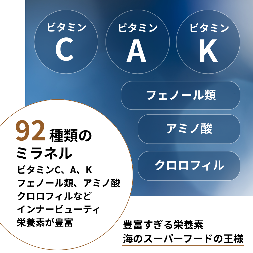 シーモスは「海のシーパーフードの王様」と言われ、古くから92種類のミネラルを含むと言われています。