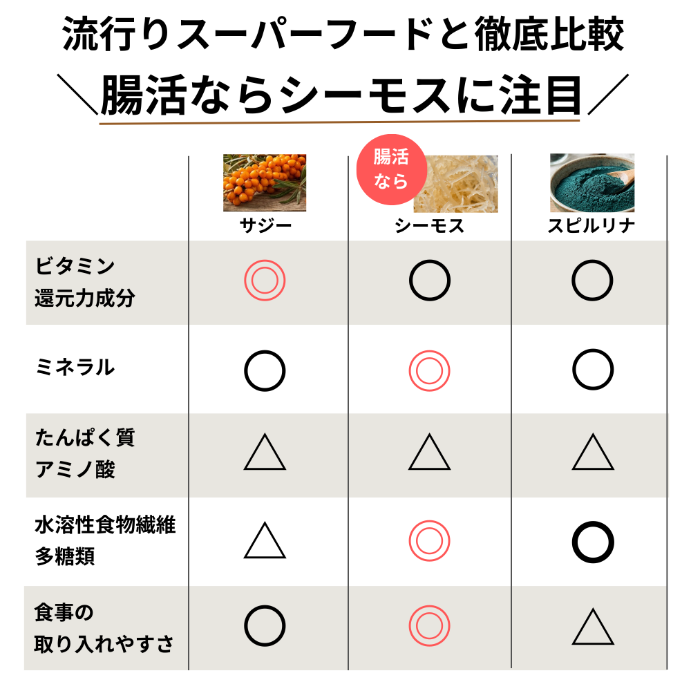スーパーフードで人気な食材は様々ありますが、ミネラルと水溶性食物繊維が特に豊富なシーモスなら、あなたの腸活パートナーになってくれます。